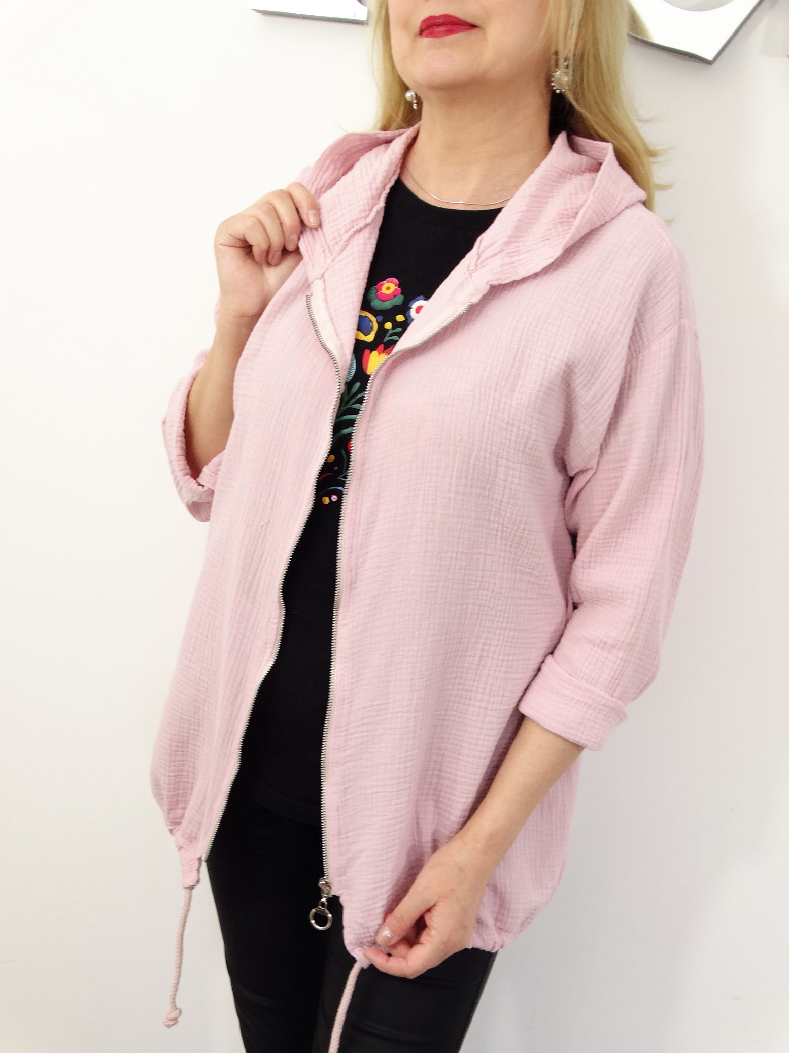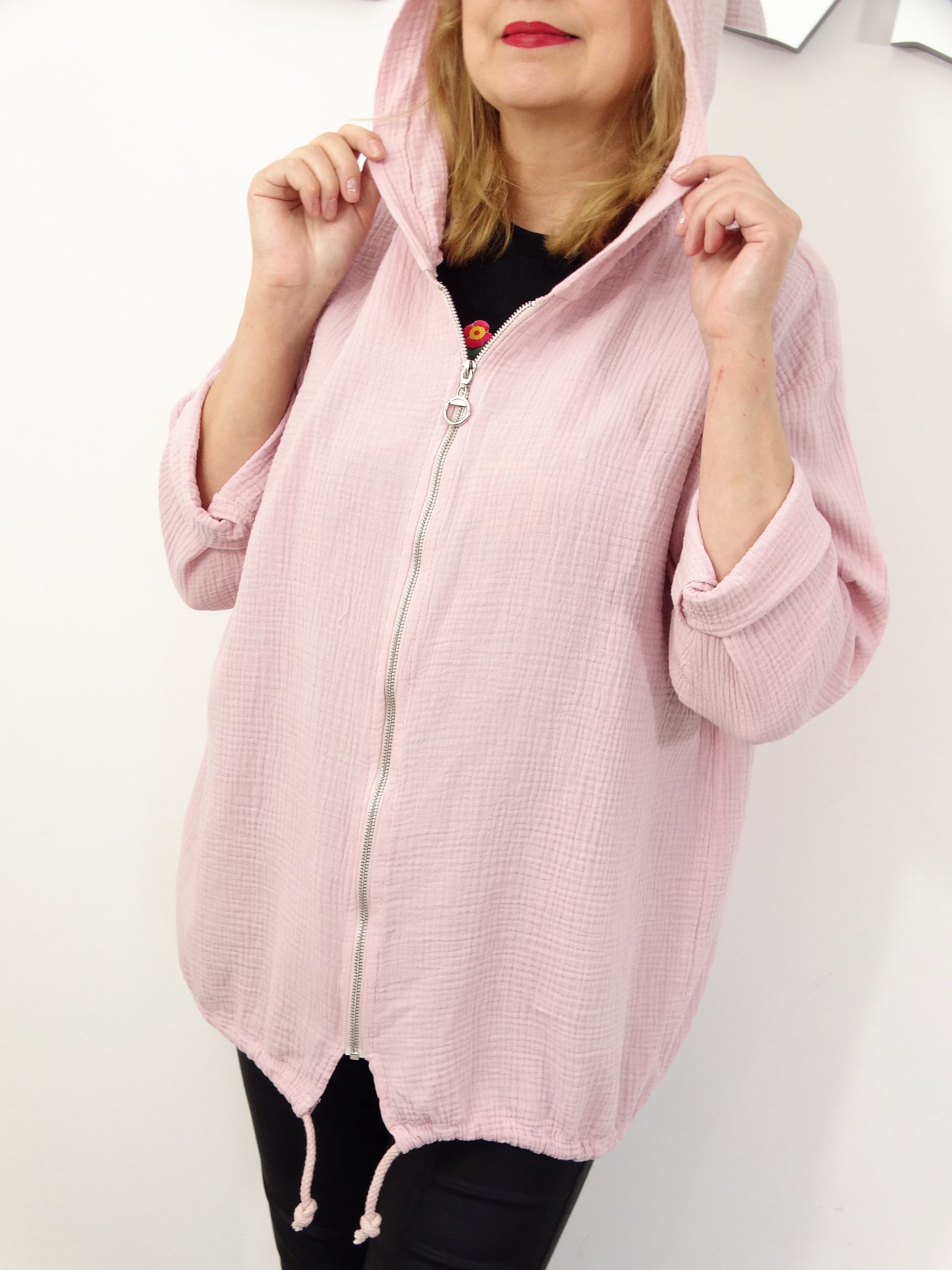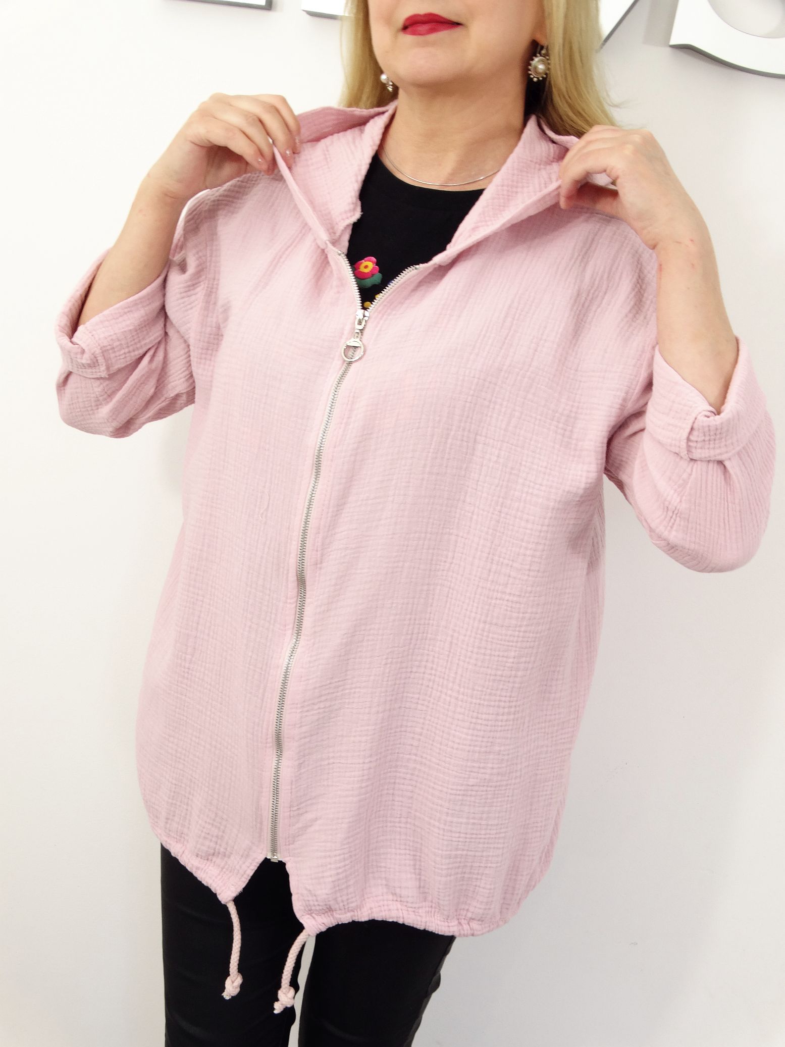 Napisz pierwszą opinię o „Bluza Narzutka Muślinowa Bawełniana Letnia MILD rozmiar uniwersalny od 42 do 50 pudrowa”