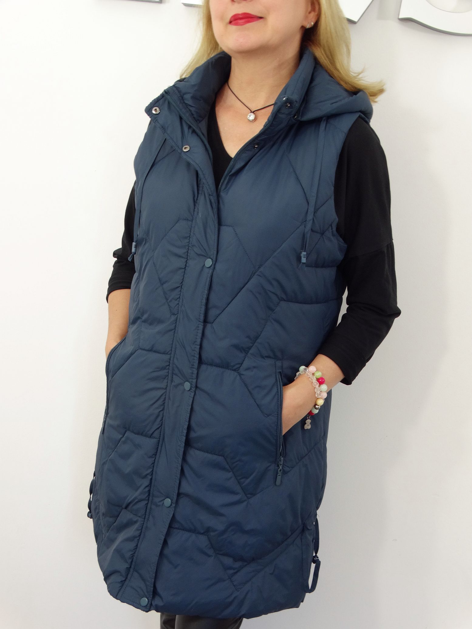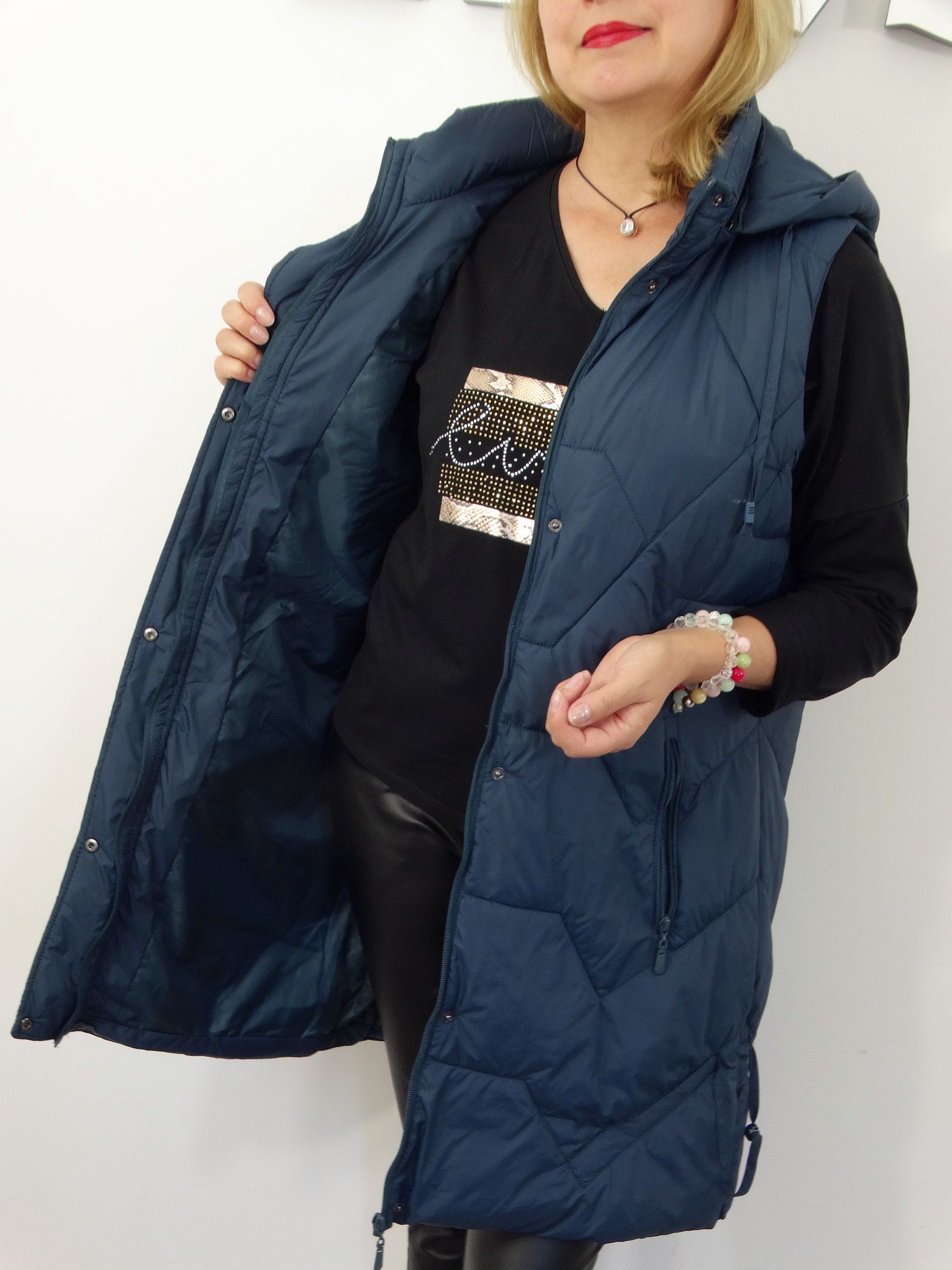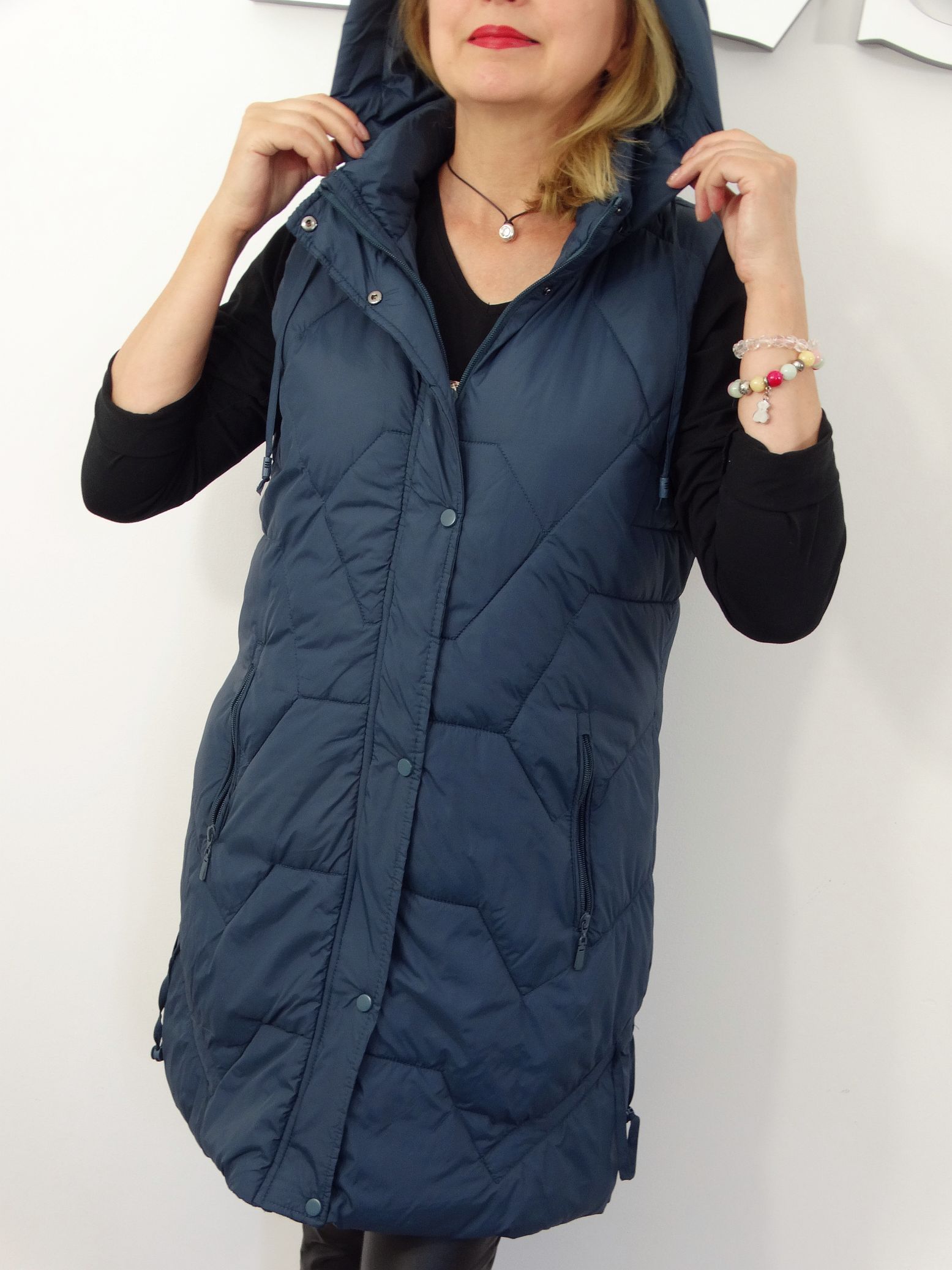 Długa Kamizelka Pikowana Bezrękawnik z Odpinanym Kapturem SIMONA od 44 do 54 morska