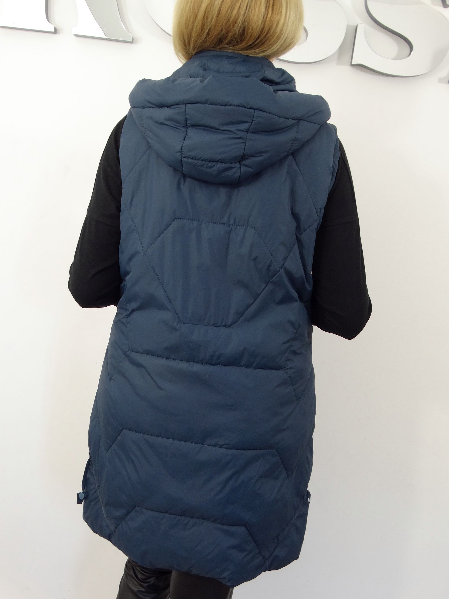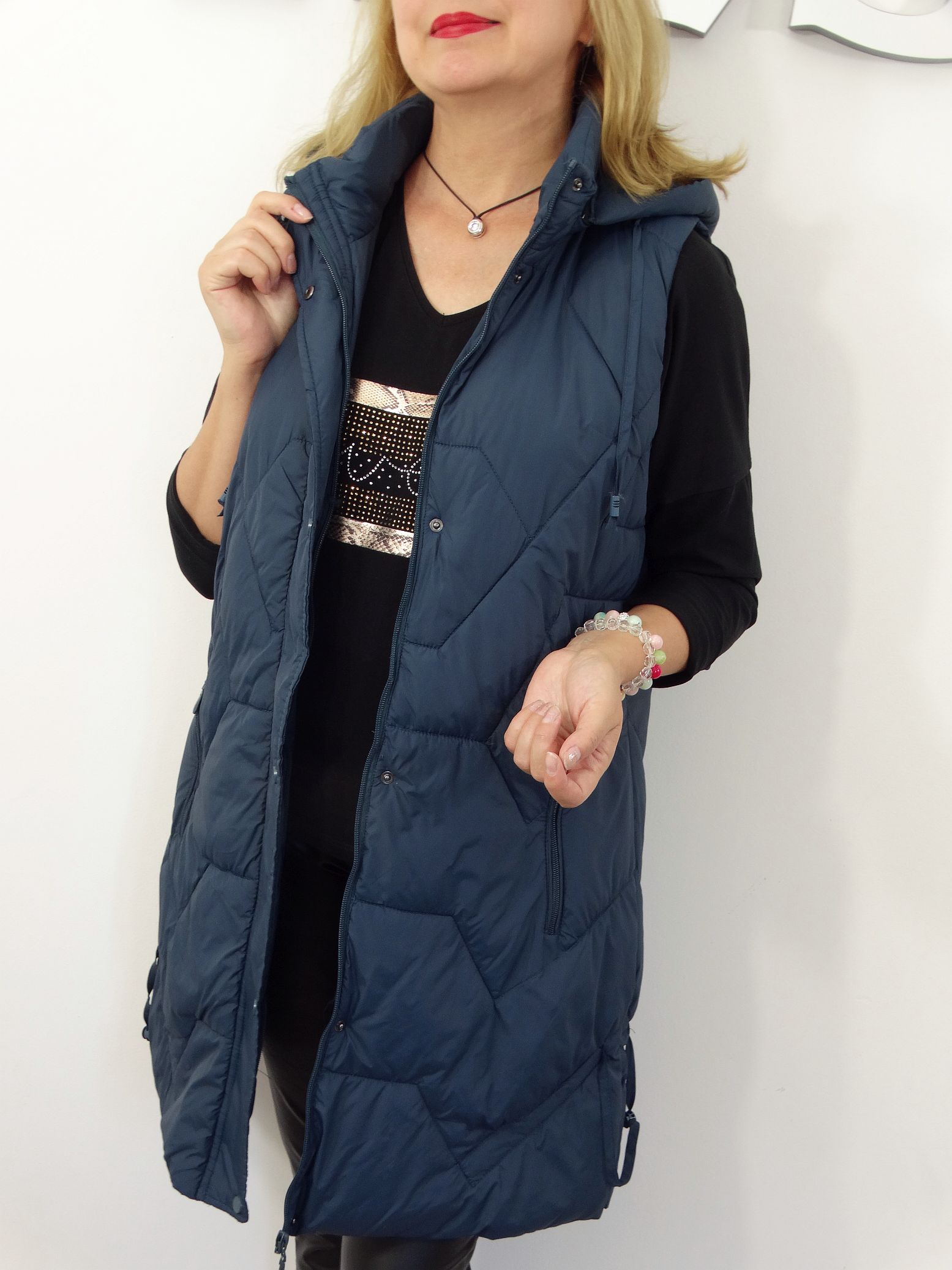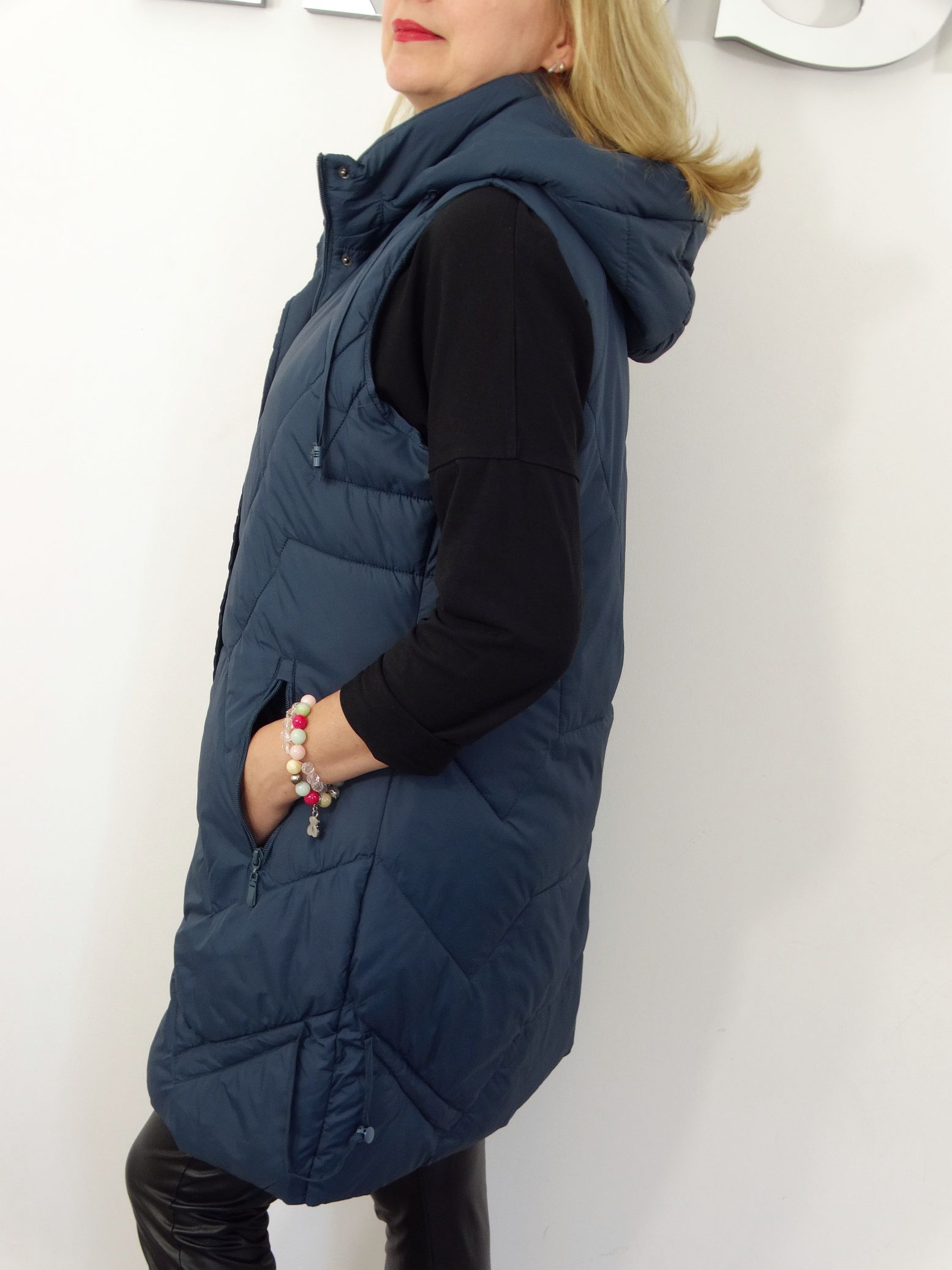 Długa Kamizelka Pikowana Bezrękawnik z Odpinanym Kapturem SIMONA od 44 do 54 morska