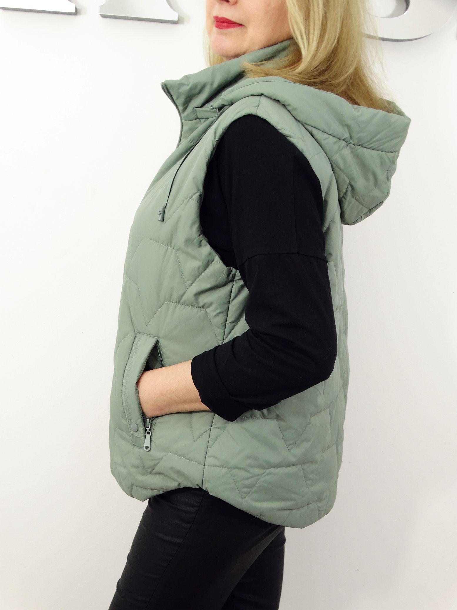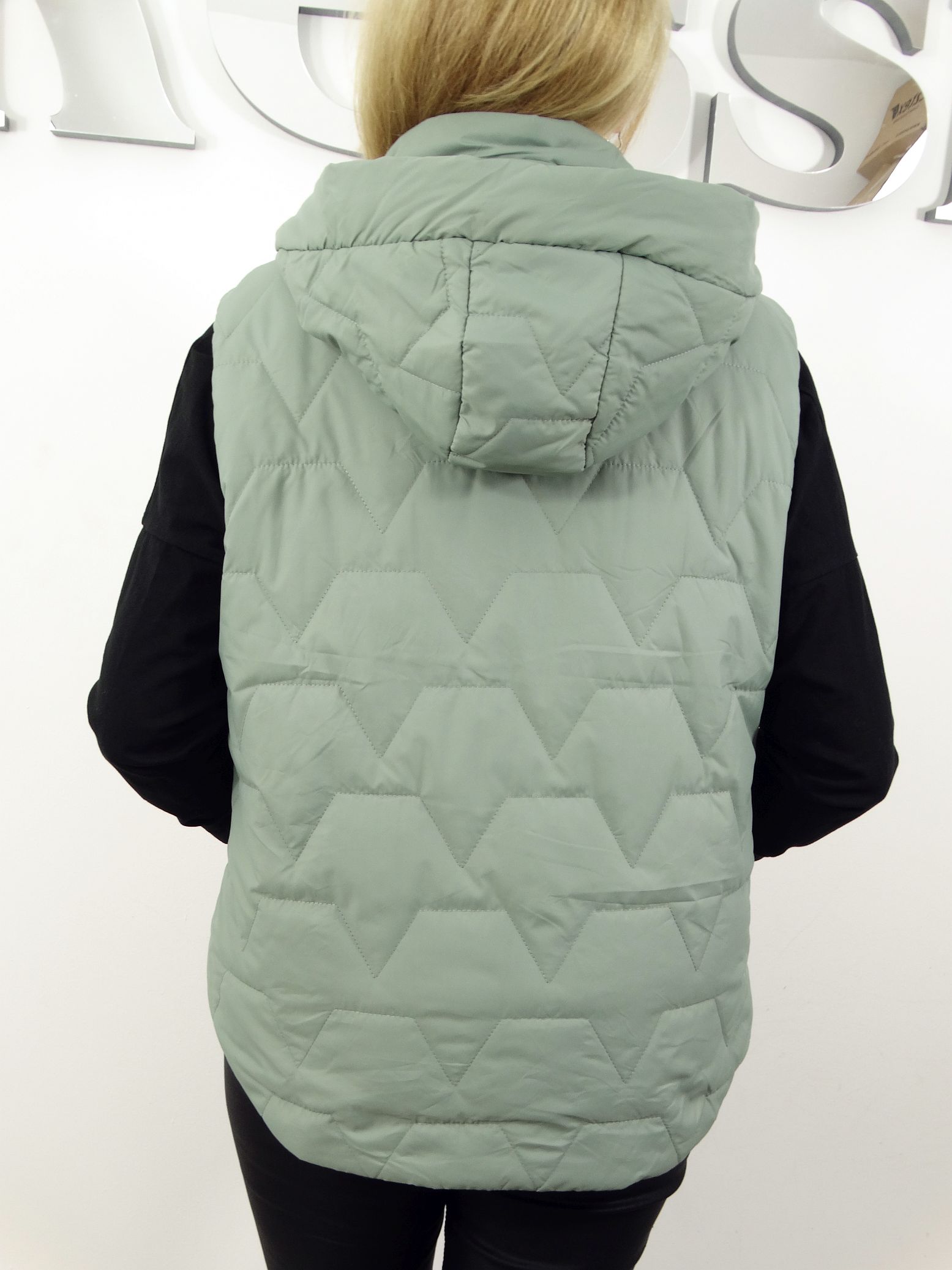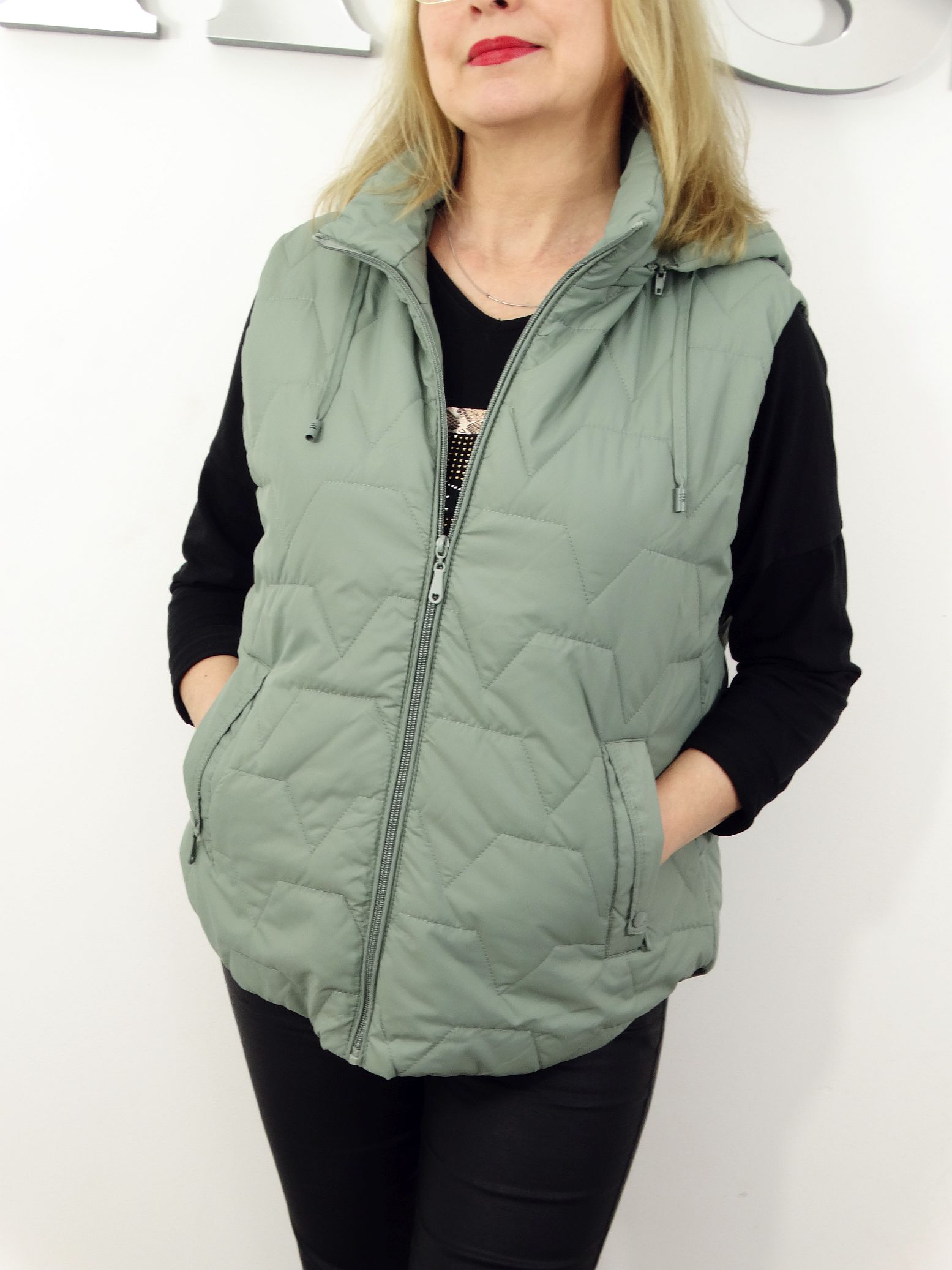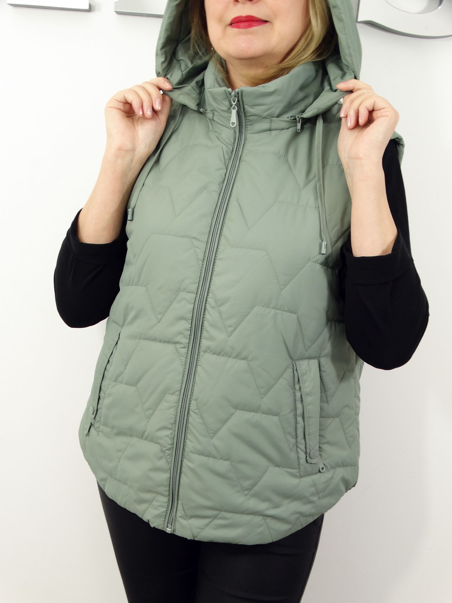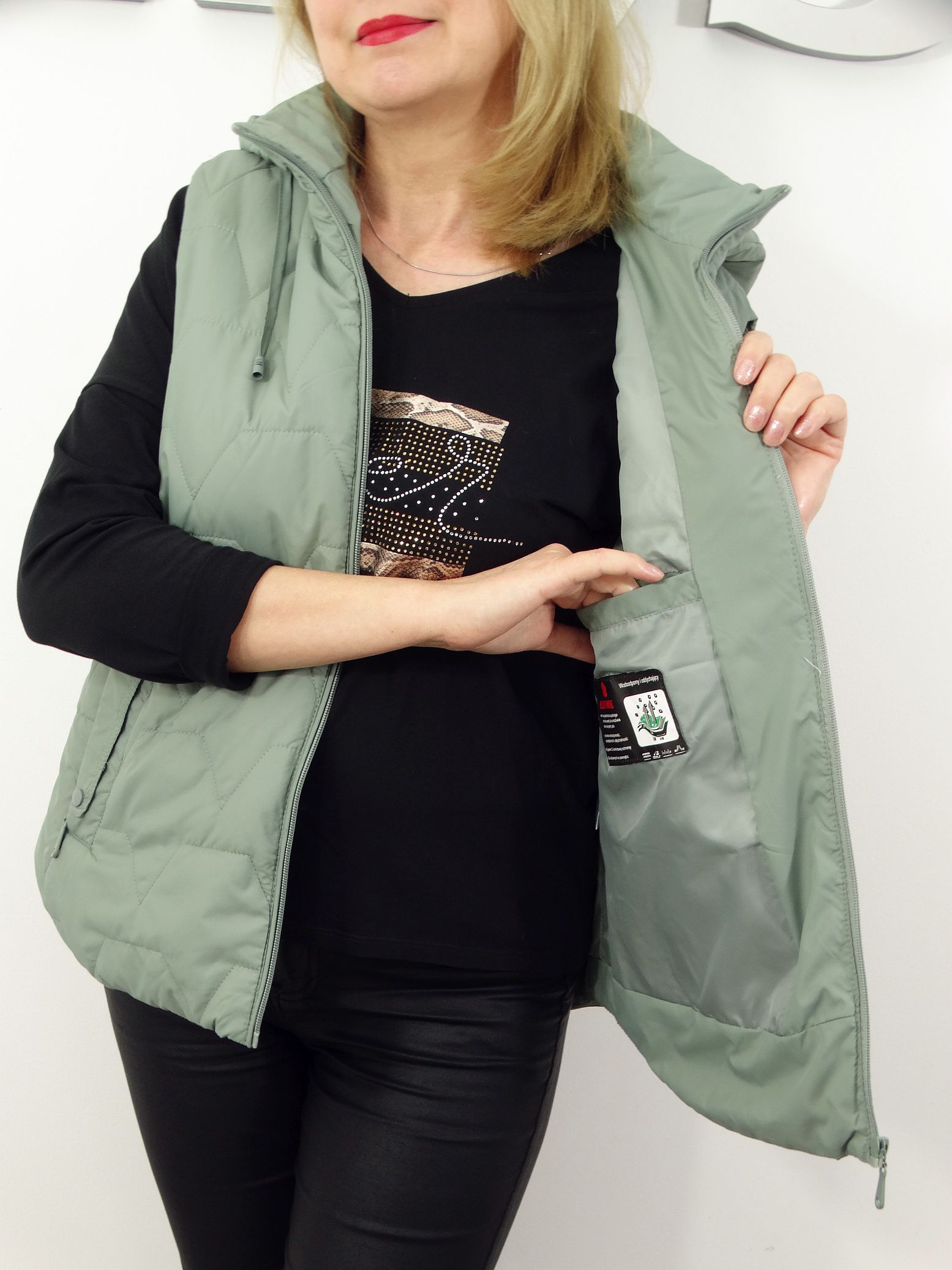 - Pikowana kamizelka z odpinanym kapturem.