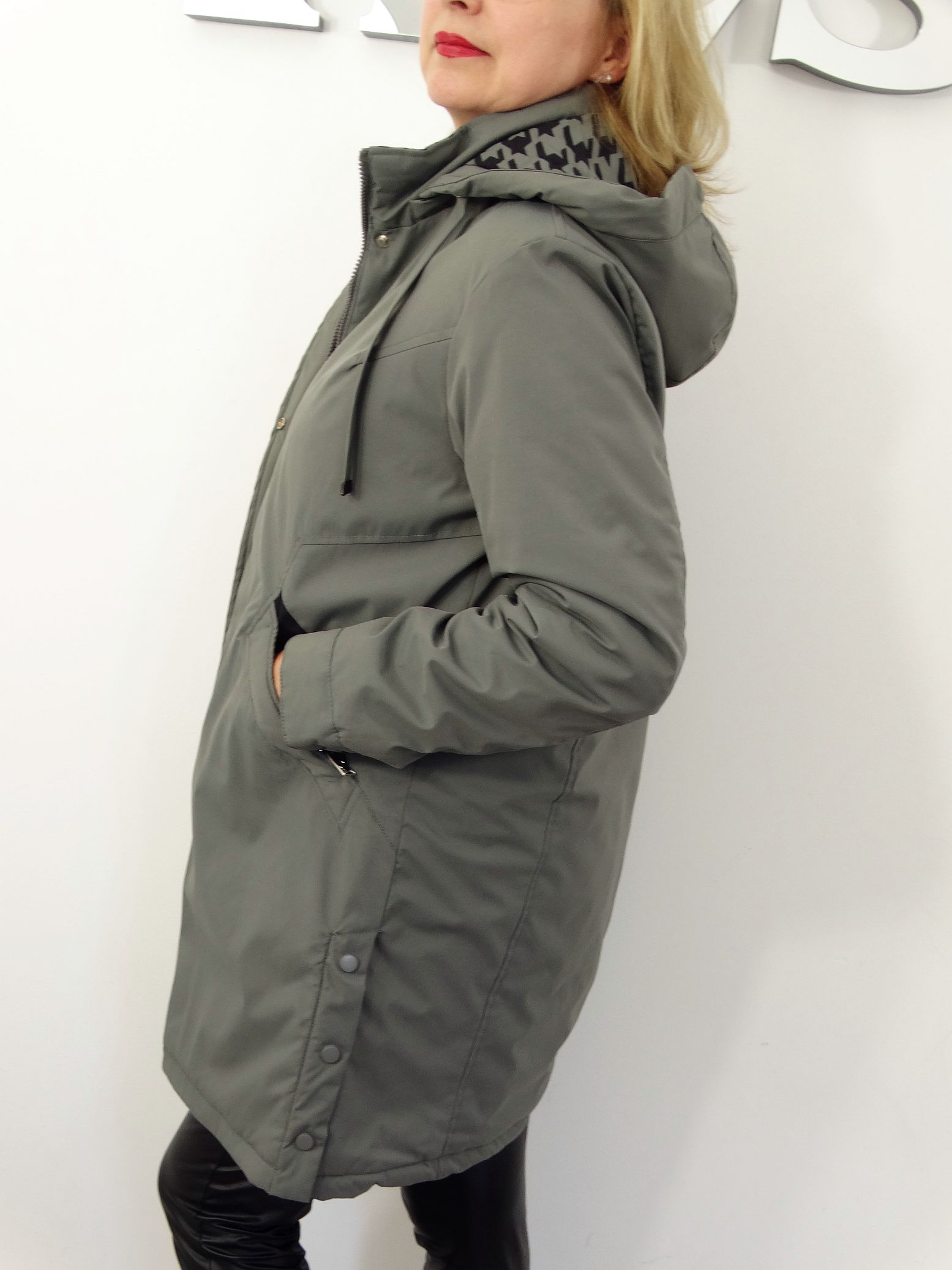 - Kurtka posiada odpinany kaptur (na suwak). Po odpięciu kaptura elegancka stójka.