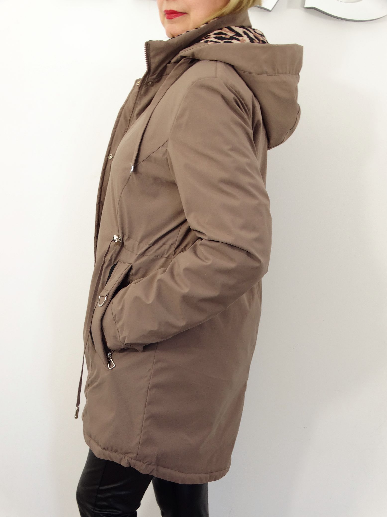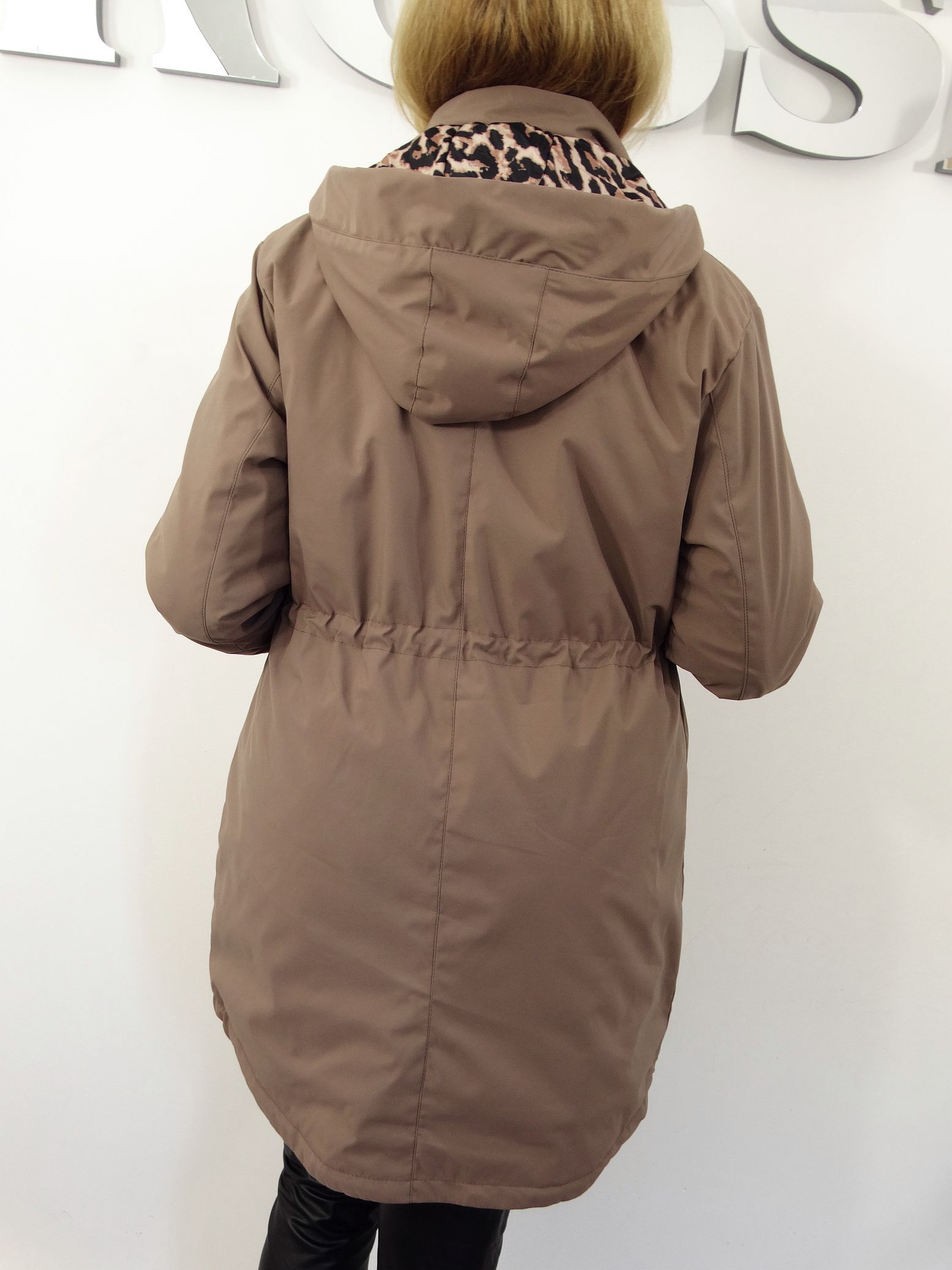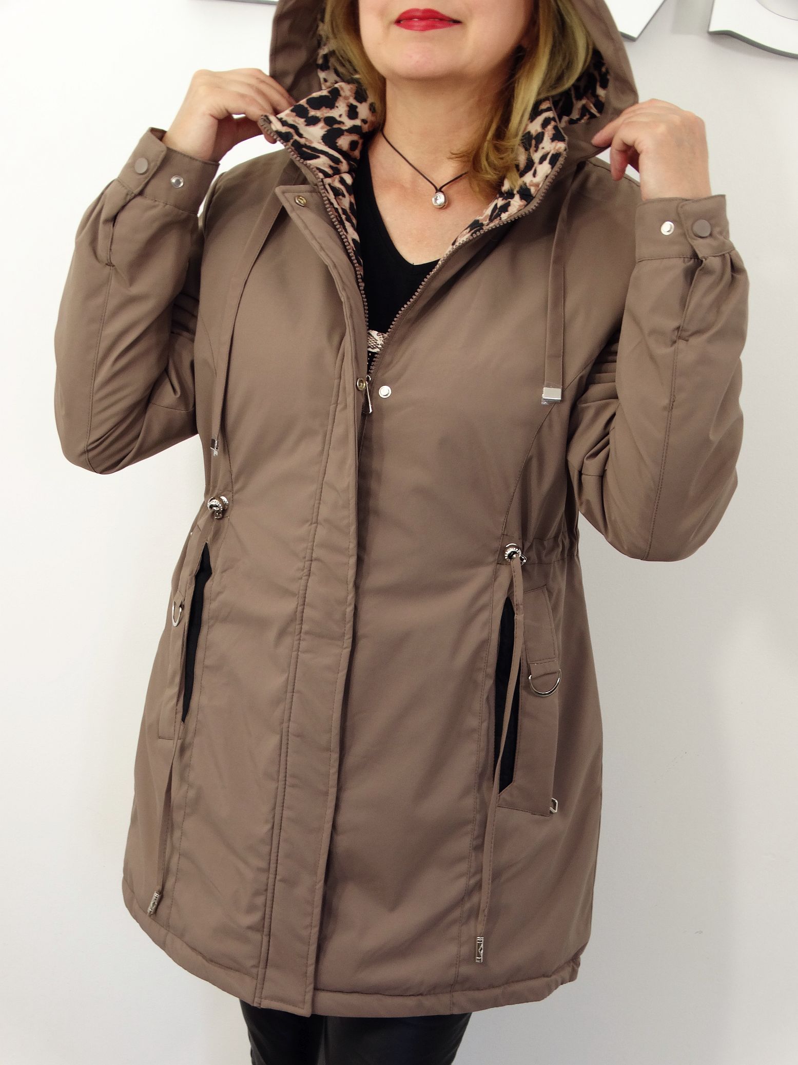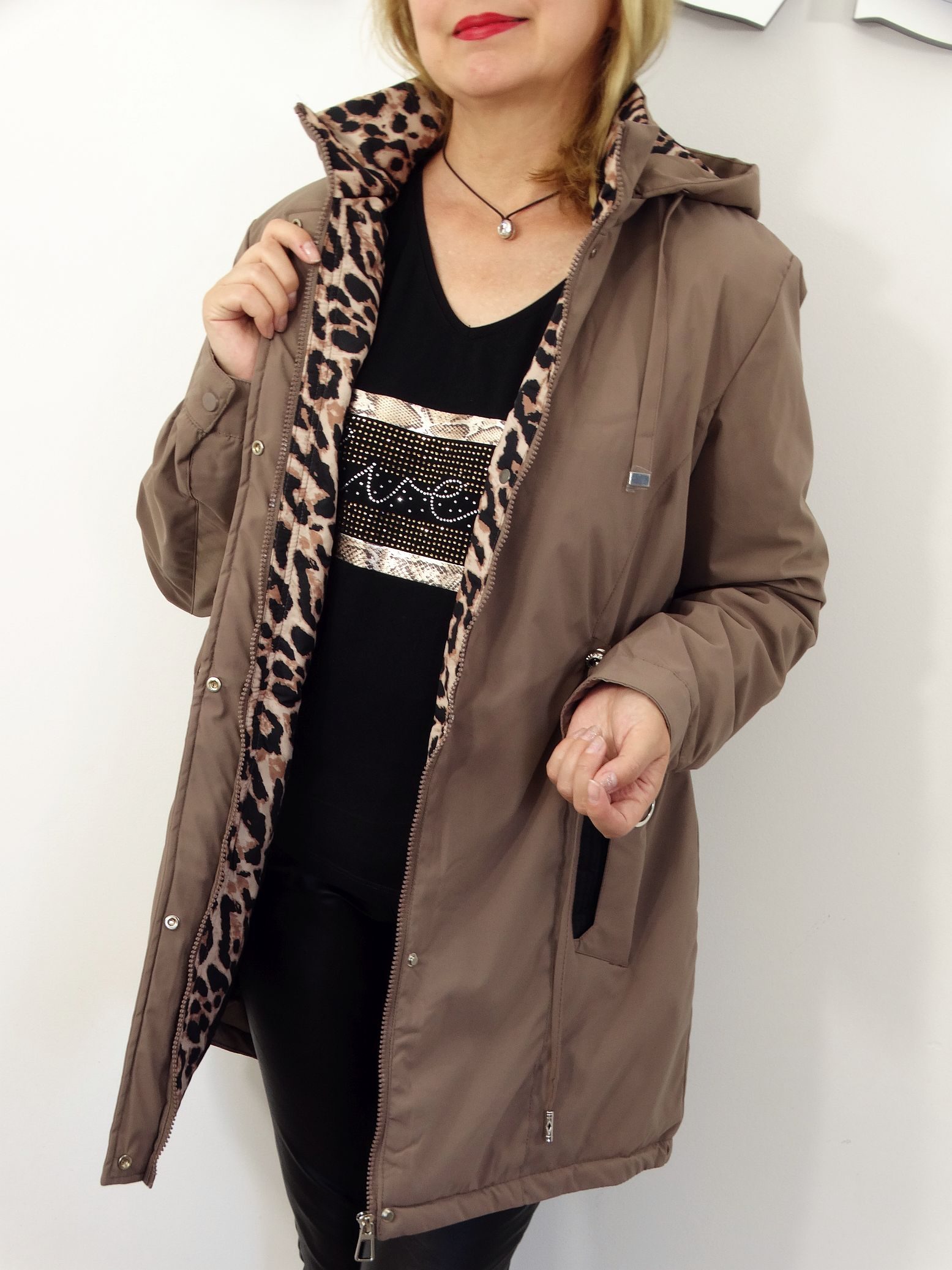 - Kurtka posiada od wewnątrz dekoracyjny motyw panterki.
