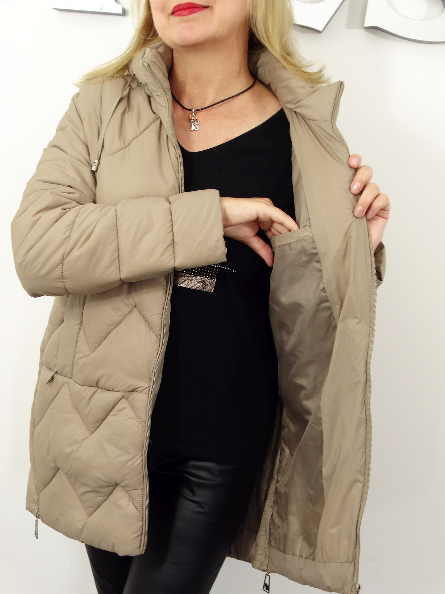 Napisz pierwszą opinię o „Kurtka Damska Pikowana Jesienna MELANIA od 44 do 54 beżowa”