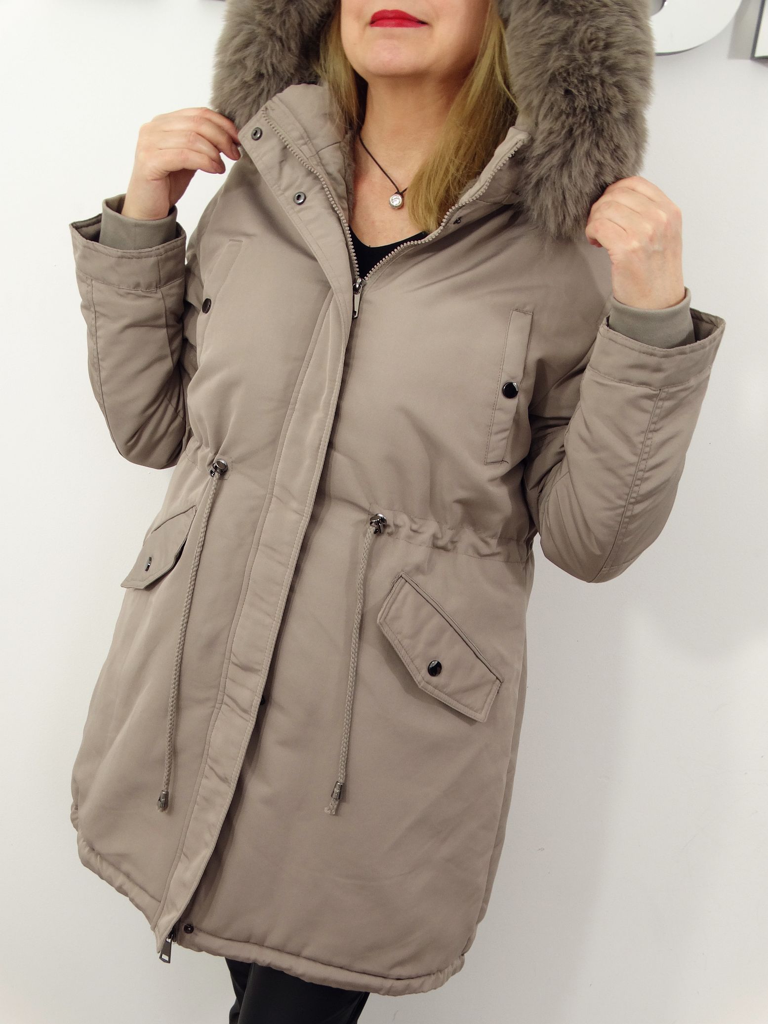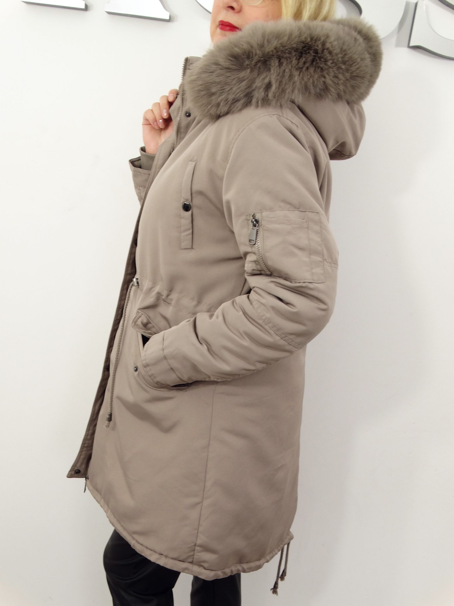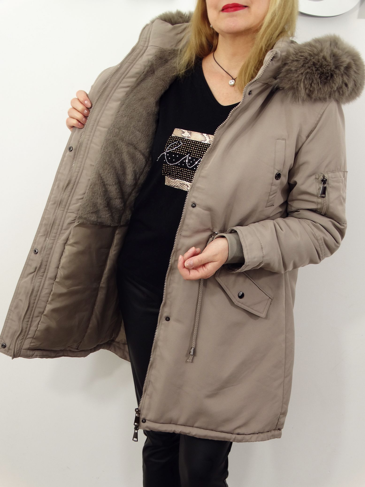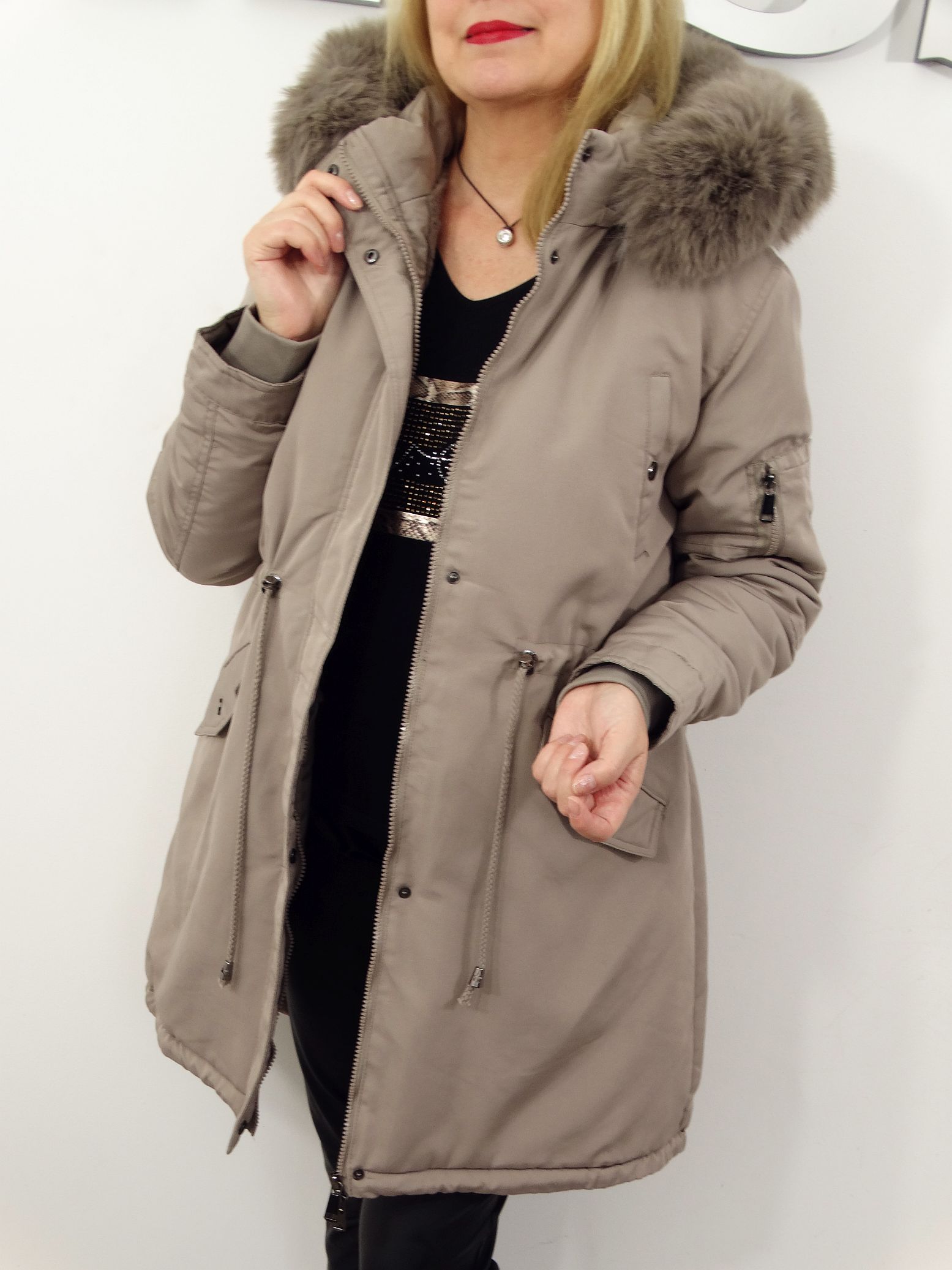 - Wnętrze kurtki obszyte miękkim futerkiem.