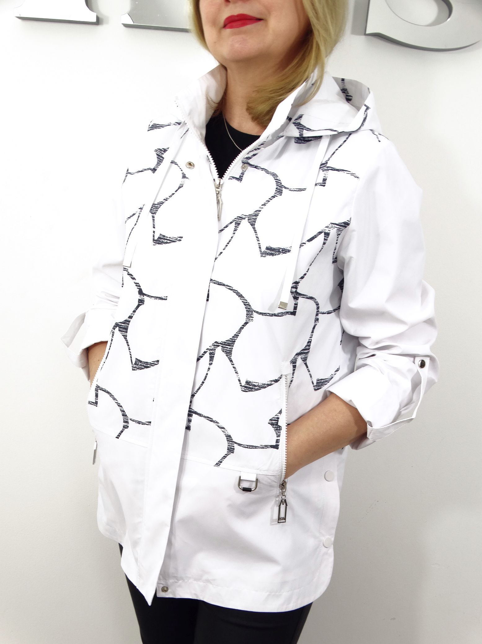 Kurtka Wiatrówka Parka z Odpinanym Kapturem LILIANA od 40 do 50 biała