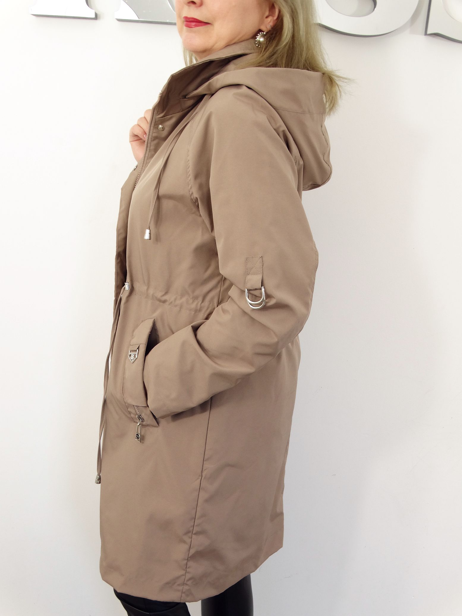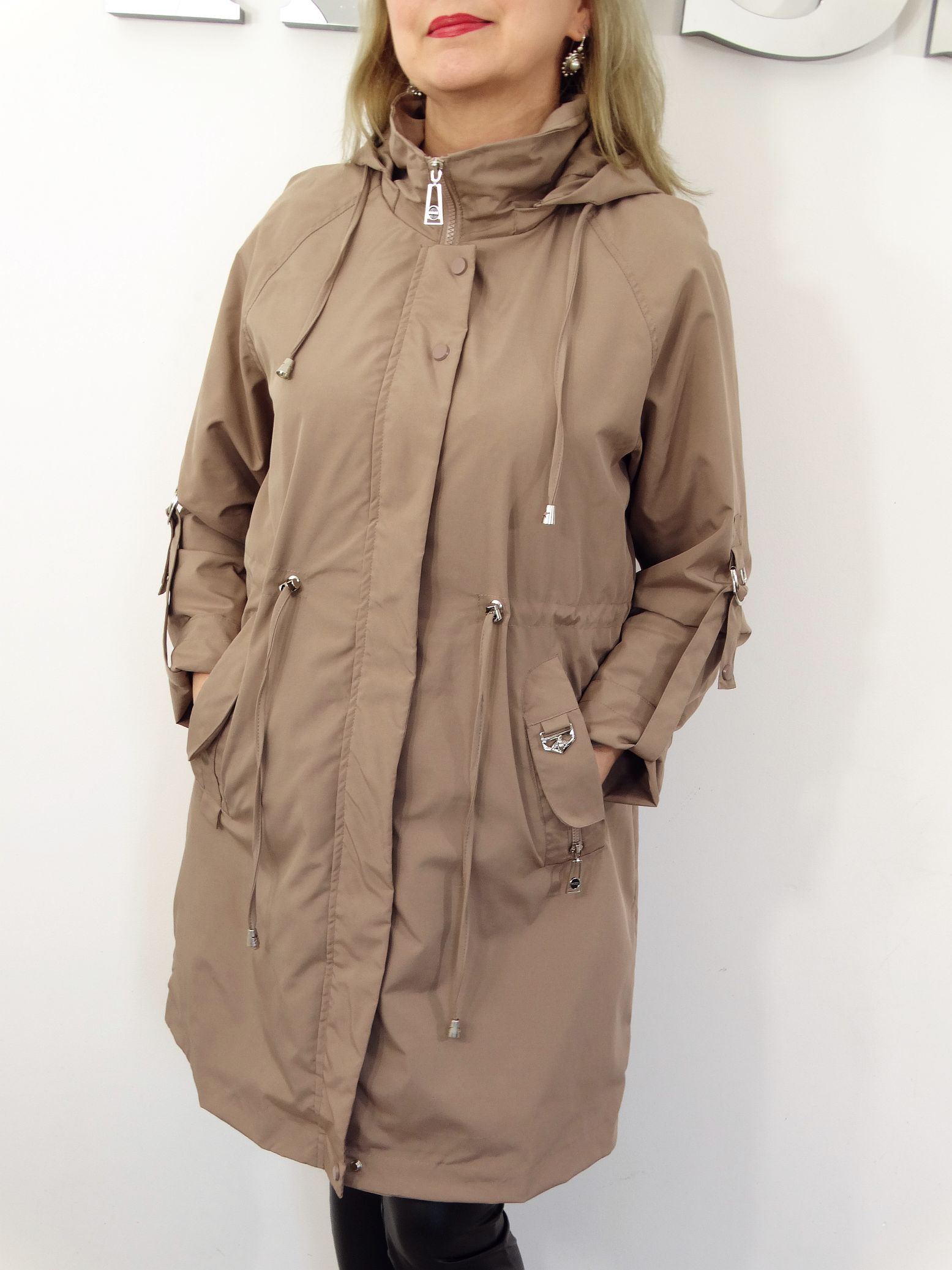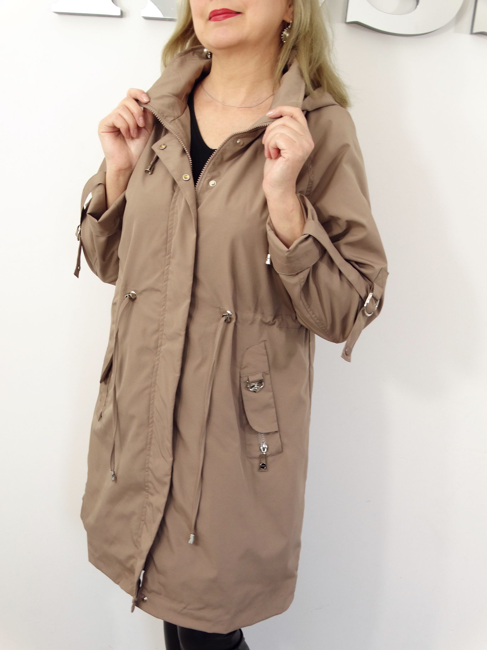 - Kieszenie płaszcza zapinane na napki.